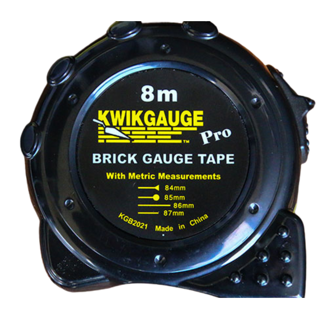 The 5m Kwikgauge GAUGE is finally here – the new 5 Metre addition to the KWIKGAUGE Brand! This Kwikgauge 5M GAUGE Tape fits easily in the palm of your hand, has a couple of new gauges on that will make you smile and best of all it’s lightweight so it won’t continually make your pants fall down! Unlike the KWIKGAUGE Pro Brick Gauge Tape that offers the ability to calculate brick quantities, this new 5M GAUGE tape is for the brickie doing the hard yards, who has no reason to work out brick quantities. It also includes standard metric measurements so you don’t need to carry two tapes.