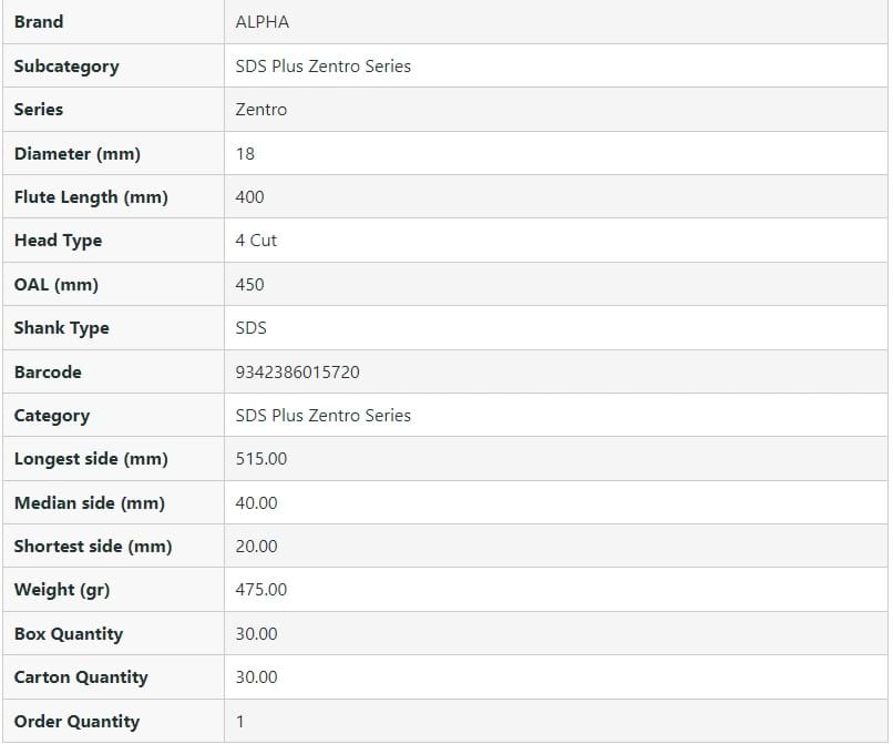 SDS Plus Zentro 4-Cutter Masonry Drill Bit - 18mm OAL.450mm FL.400mm