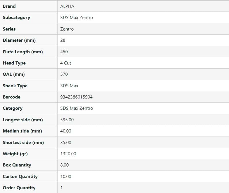SDS Max Zentro 4-Cutter Masonry Drill Bit - 28mm OAL.570mm FL.450mm