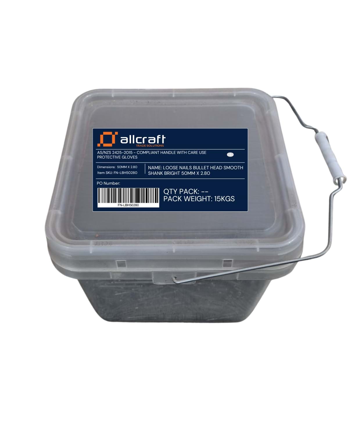50mm bright steel nails General purpose finishing nails Smooth shank 15kg tub
